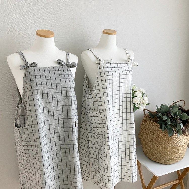 심플 체크 앞치마 2색상 원피스앞치마 예쁜 국내제작 어린이집 카페 까페 공방