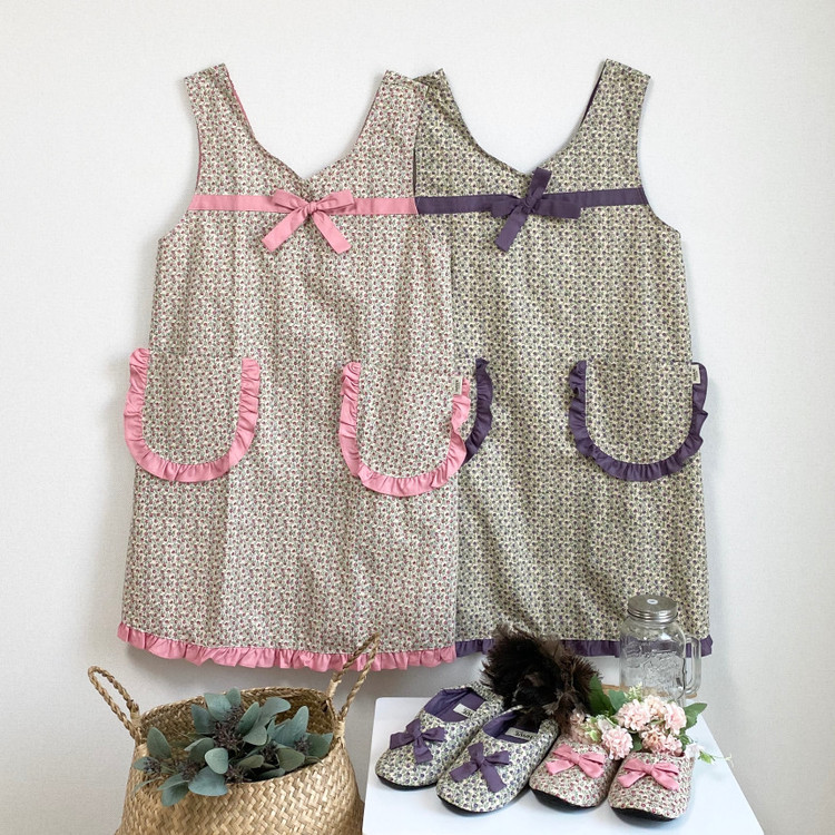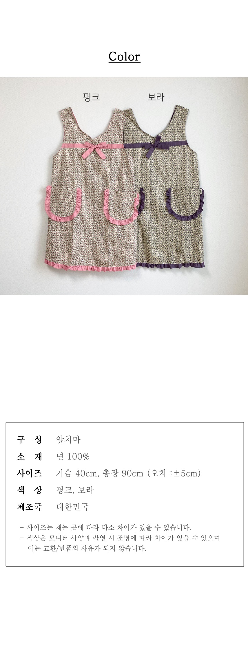 리본 프릴 앞치마 2색상 귀여운 어린이집 유치원 카페 까페 꽃무늬