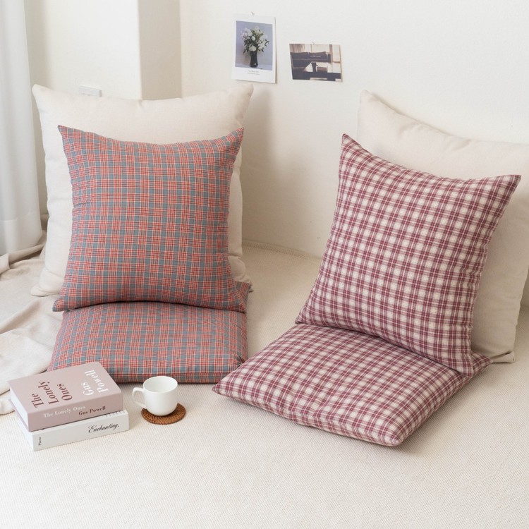아스터 체크 쿠션 방석 커버 2색상 사각 등받이 내츄럴 감성 북유럽 카페 빈티지 레트로