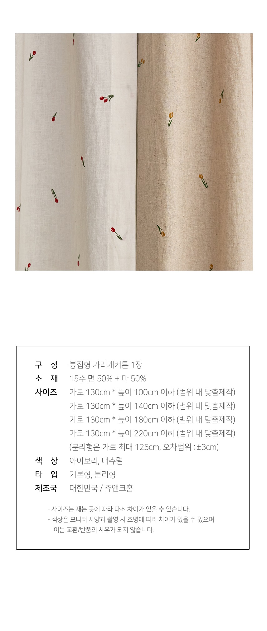 [맞춤] 튤립 가리개커튼 2색상 창문 가림막커튼 베란다 현관 중문 방풍 방한 주방 작은창