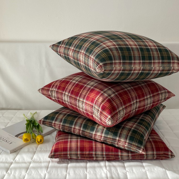 크리스마스 방석 쿠션 면 100% 커버 사무실 카페 체크 사각