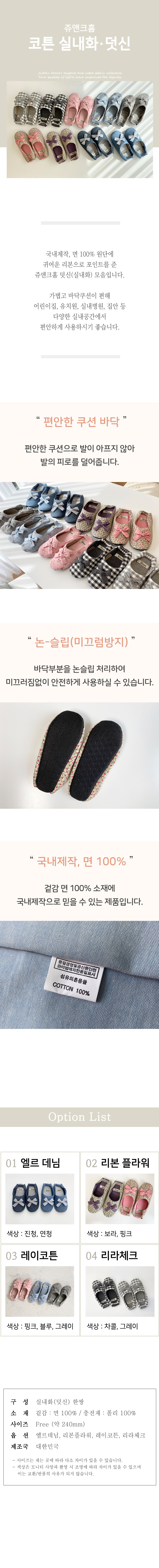 코튼 실내화 덧신 9종 귀여운 손님용 어린이집 유치원 거실화 실내용 여성 리본 체크
