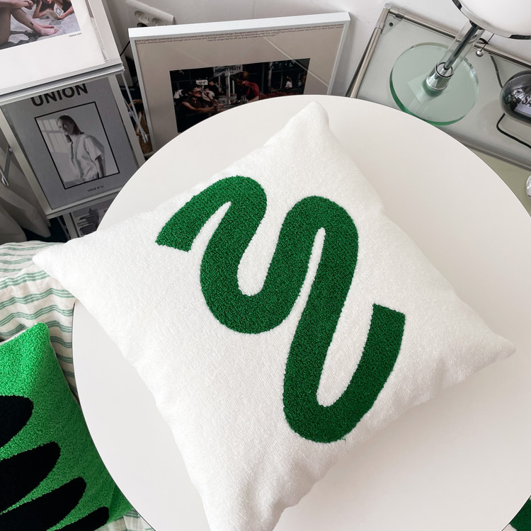 그린 머던 자수 쿠션 커버 모던 미니멀 체커보드 거실