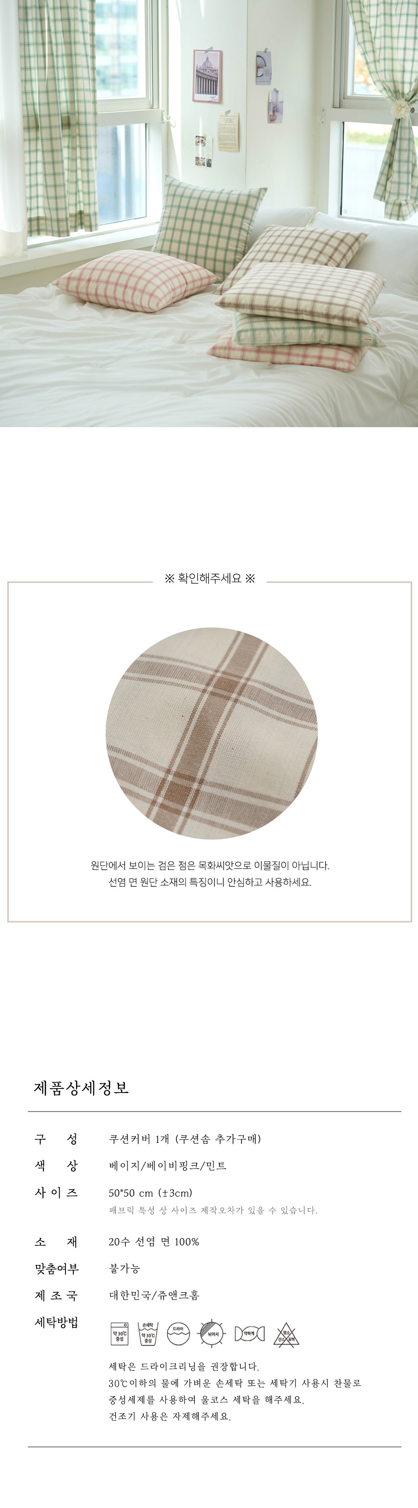 도니 체크 쿠션 방석 커버 사각 내츄럴 카페 집들이 신혼