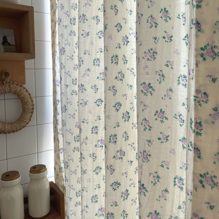 2중거즈 플라워 가리개커튼 3색상 창문 작은창 가림막 현관 중문