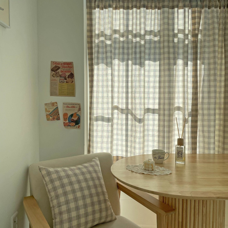니모 체크 커튼 가리개커튼 창문 4색상 빈티지 감성 가림막