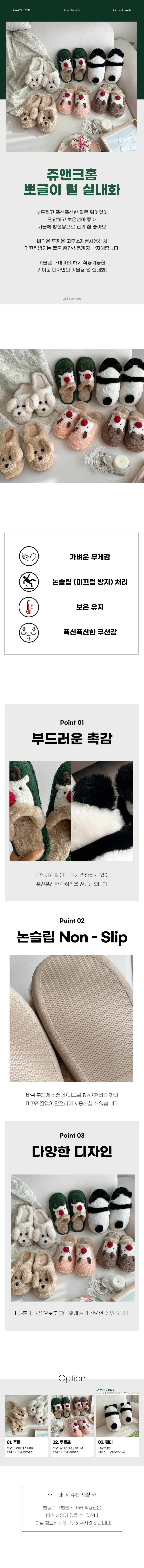 쥬앤크홈 털실내화 겨울 뽀글이 슬리퍼 푸들 강아지 루돌프 팬더 방한 거실화 논슬립
