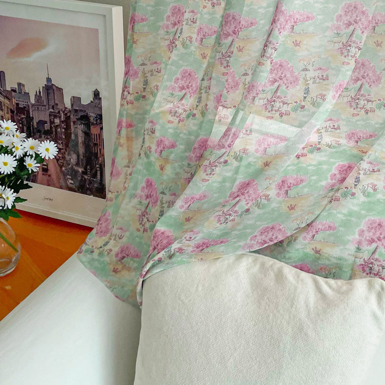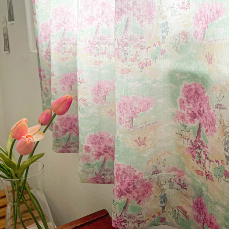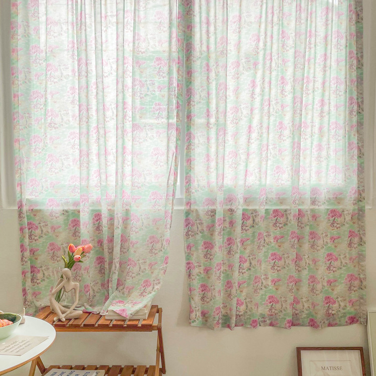 몽마르트 쉬폰 커튼 가리개 빈티지 플라워 포인트 인테리어 봉집 주방 작은창 가림막
