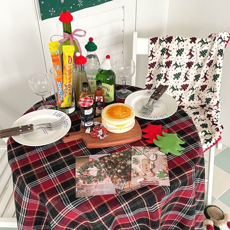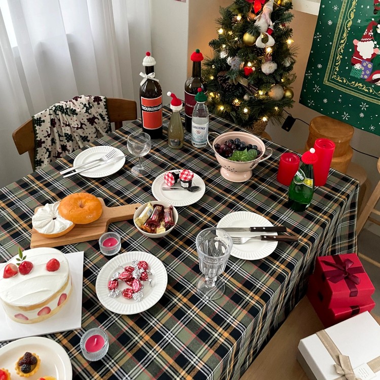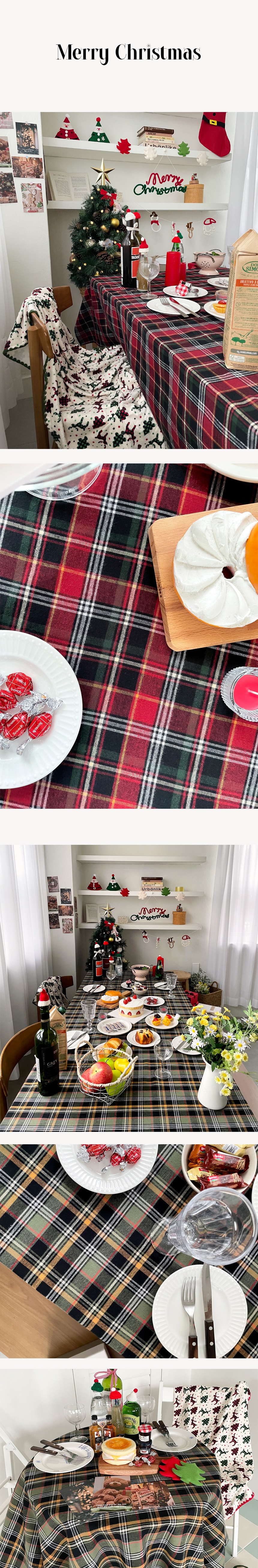 피치체크 크리스마스 식탁보 테이블보 연말 홈파티 홈카페