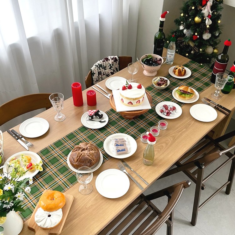 타탄체크 크리스마스 테이블 러너 그린/레드 2size