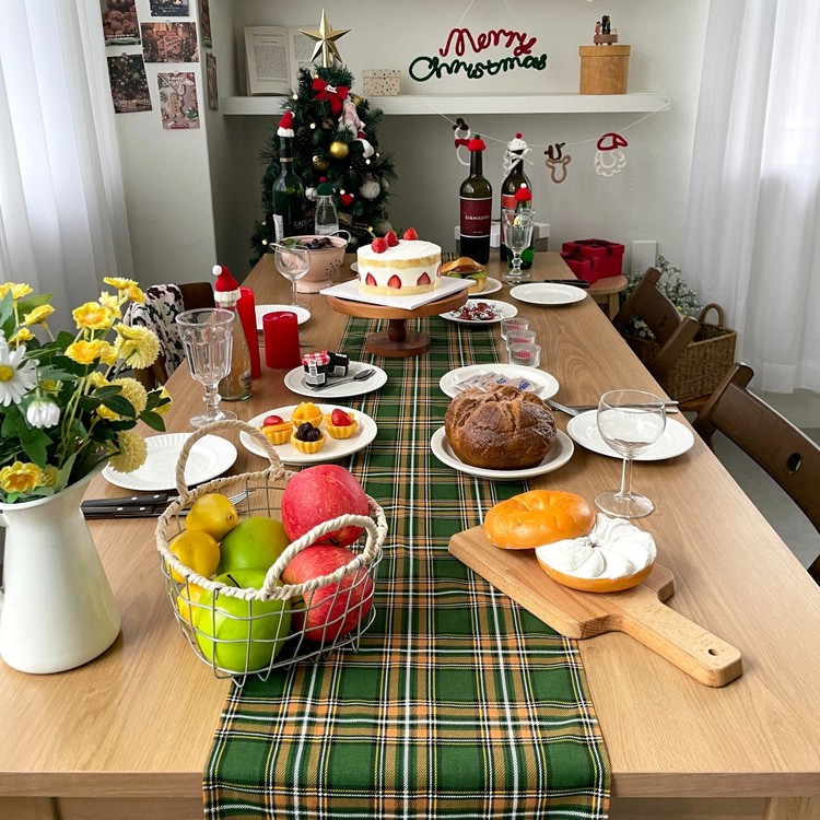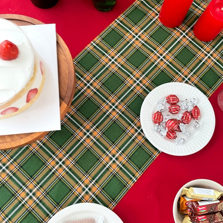 쥬앤크홈 타탄체크 크리스마스 테이블러너 파티 4인 테이블웨어 식탁 러너