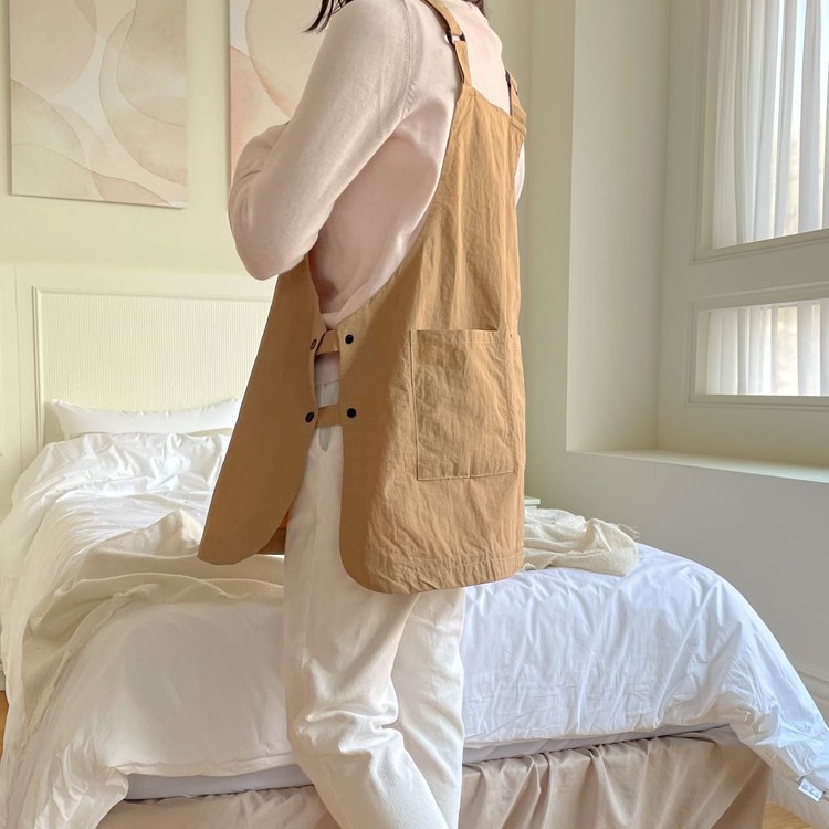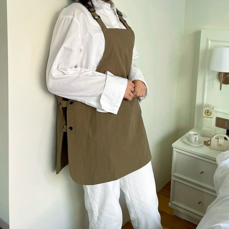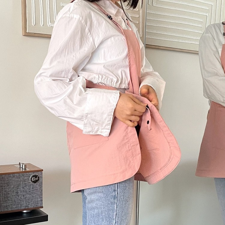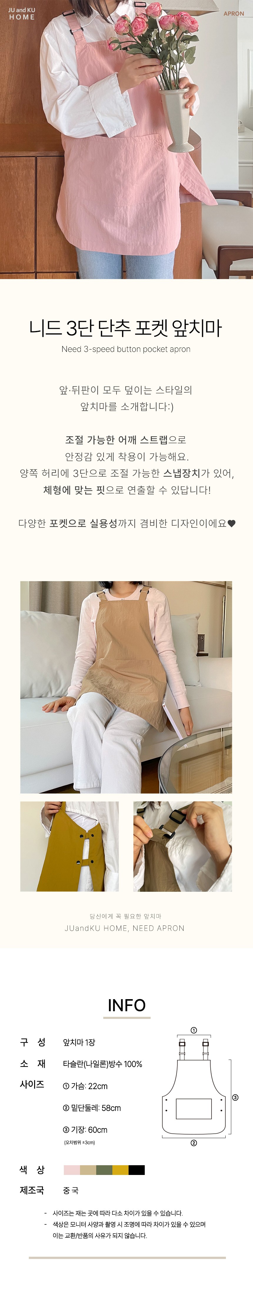 쥬앤크홈 니드 단추 방수 앞치마 어린이집 카페 미용 바리스타 주방 미용실 에이프런 앞치마
