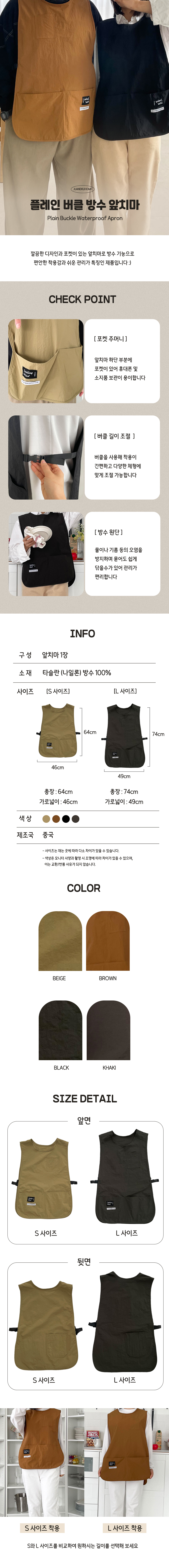 쥬앤크홈 플레인 버클 방수 앞치마 어린이집 카페 미용 바리스타 미용실 에이프런 앞치마