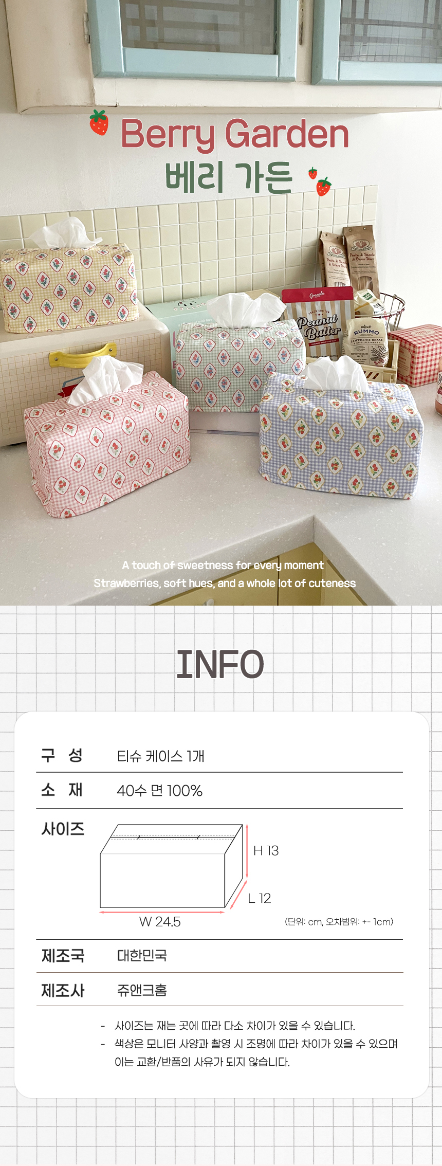 쥬앤크홈 베리가든 빈티지 티슈 케이스 딸기 체크 각티슈커버 박스 파우치