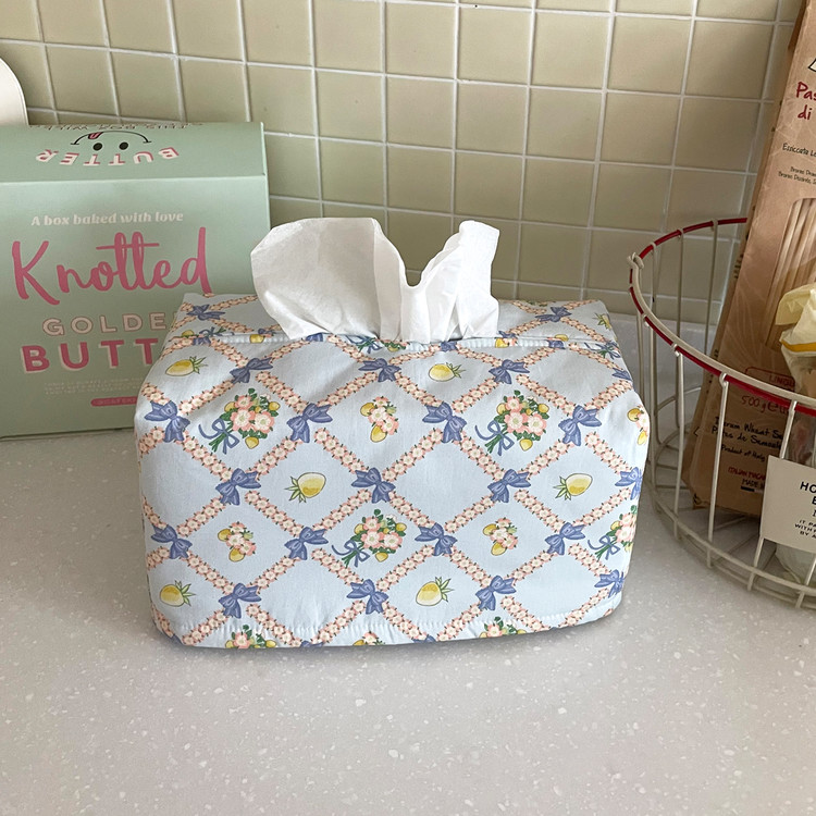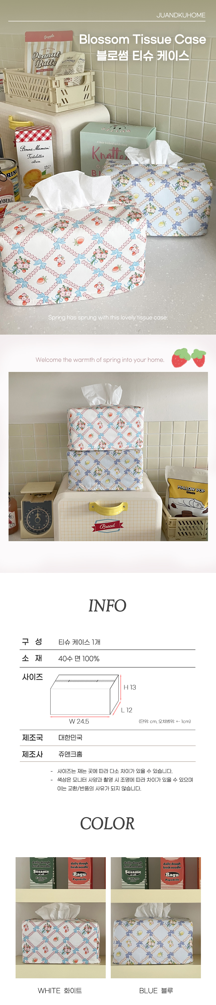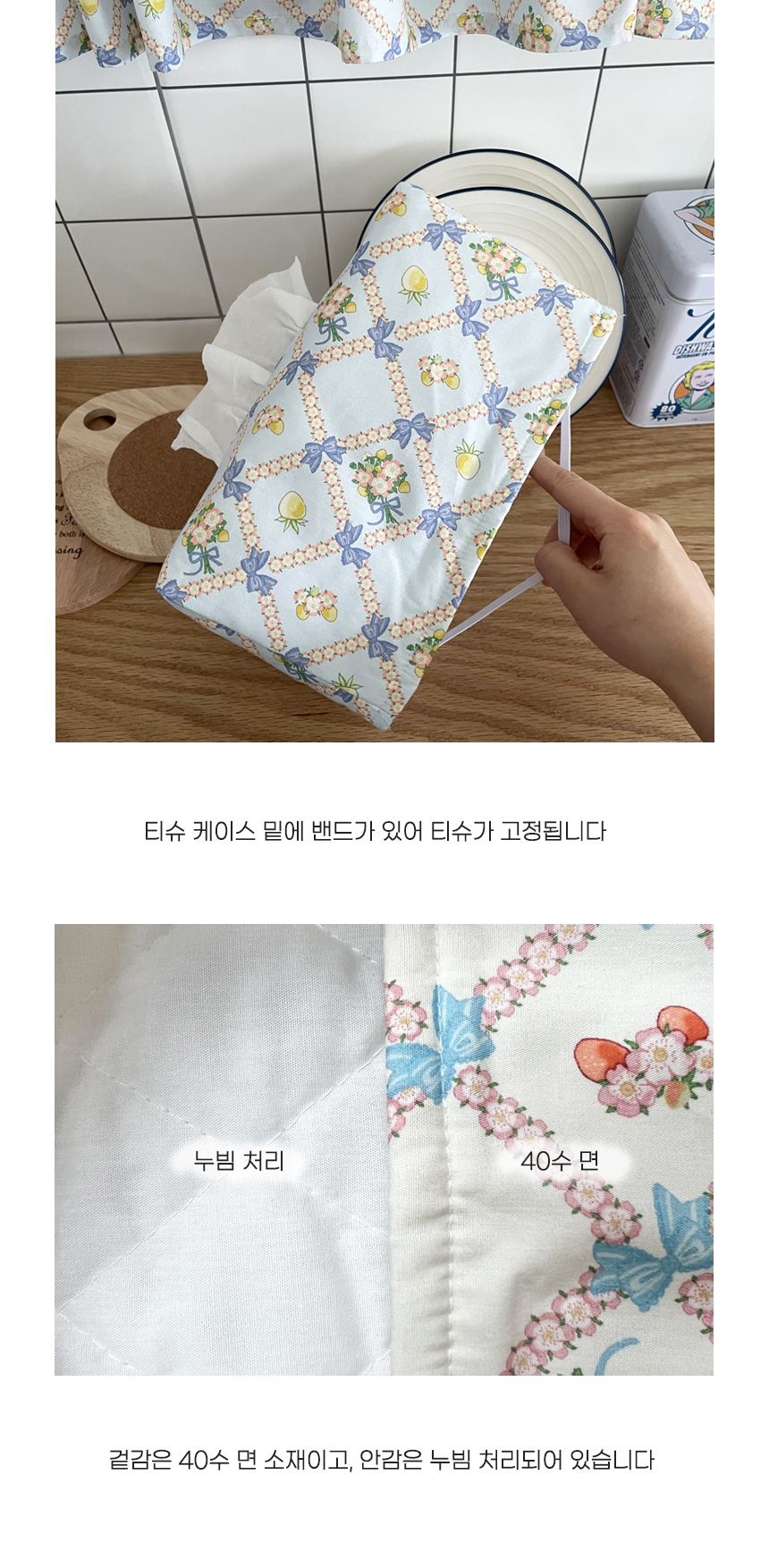 쥬앤크홈 블로썸 빈티지 티슈 케이스 딸기 부케 리본 각티슈커버 박스 파우치