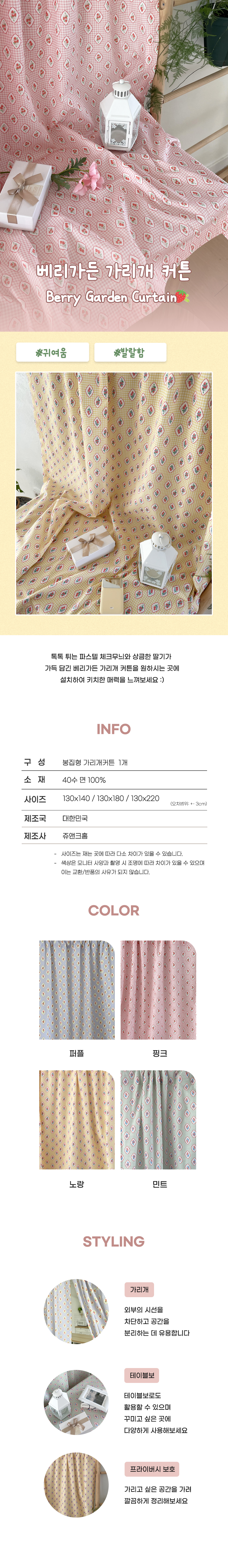 쥬앤크홈 베리가든 빈티지 가림막커튼 창문 가리개 130x140 베란다 현관 중문 방풍 커튼