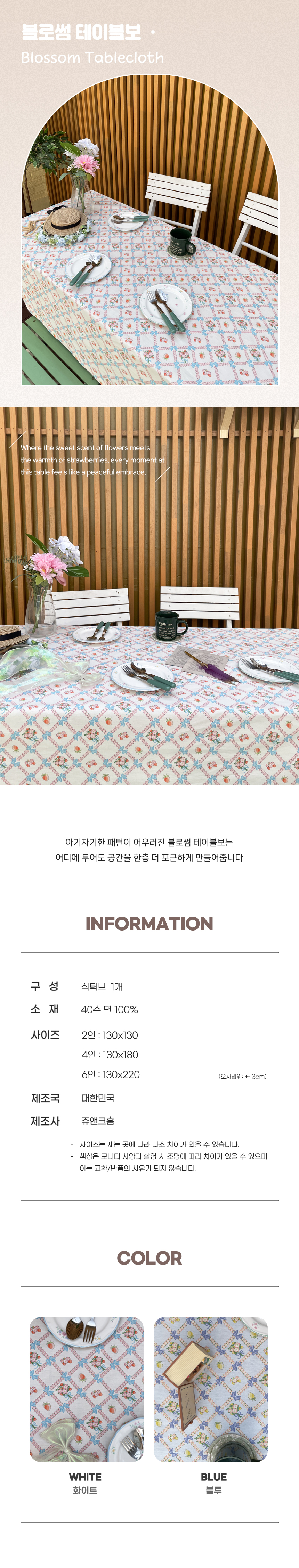 쥬앤크홈 블로썸 빈티지 레트로 식탁보 테이블보 2인 식탁 책상 커버 웨어 식탁보