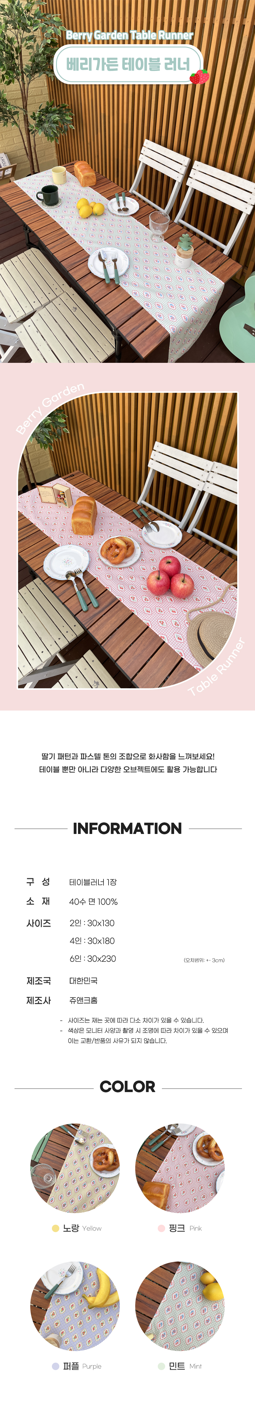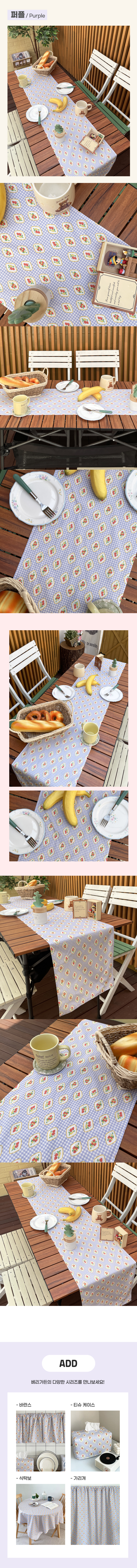 쥬앤크홈 베리가든 빈티지 테이블러너 2인 테이블웨어 식탁 러너 선반 커버 덮개