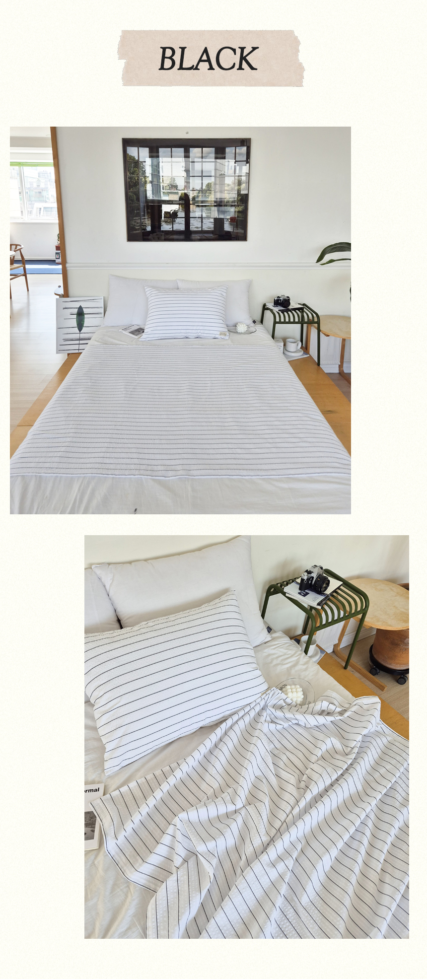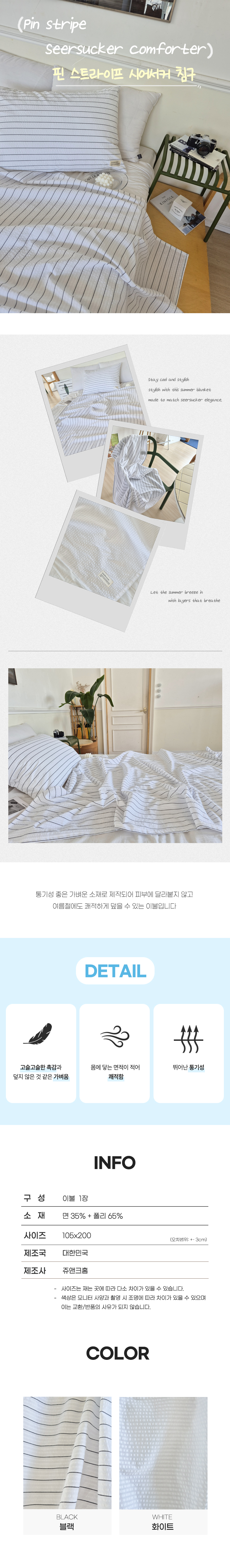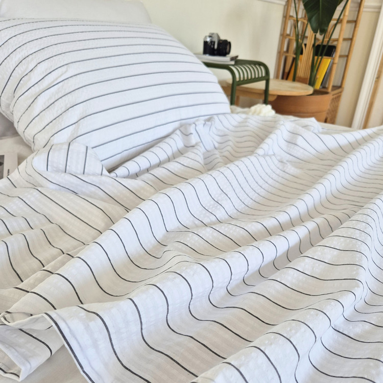 쥬앤크홈 핀 스트라이프 여름 시어서커이불 냉감 면 홑 시원한 얇은 지지미 이불