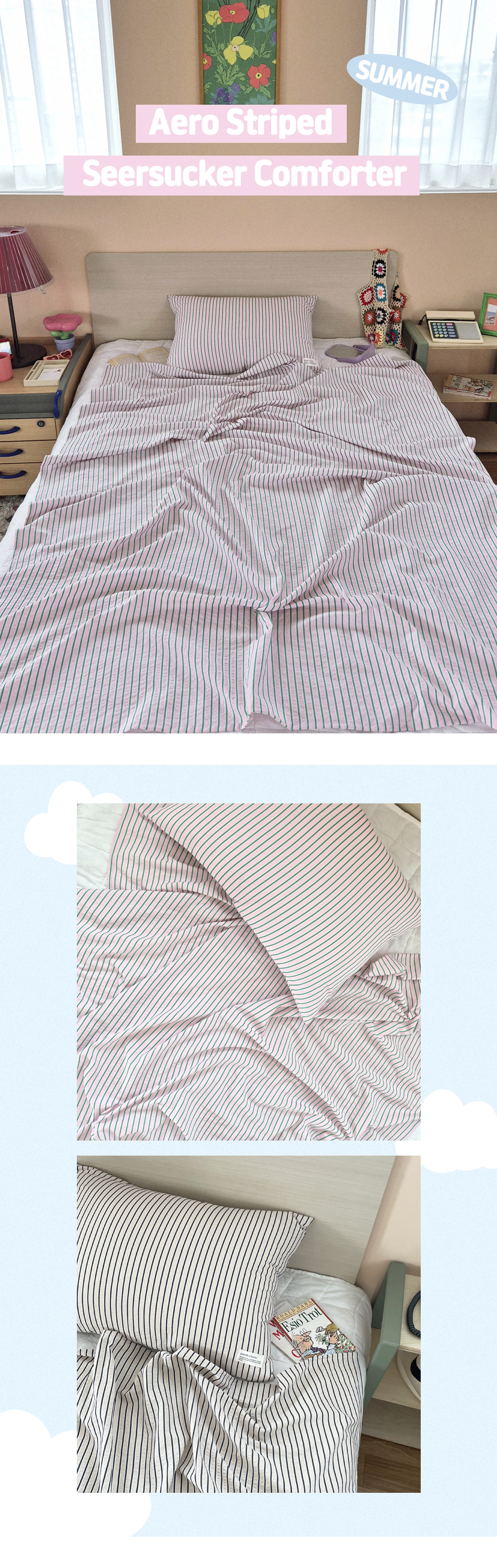 쥬앤크홈 에어로 스트라이프 여름 시어서커이불 냉감 홑 시원한 얇은 지지미 이불