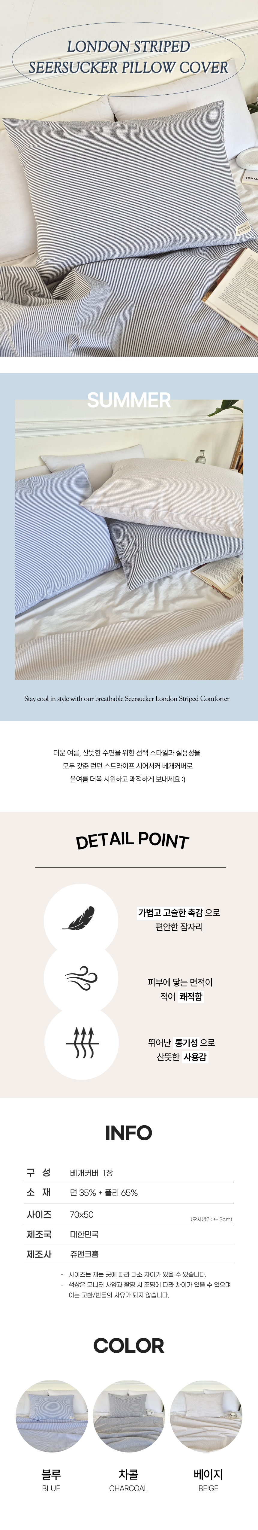 쥬앤크홈 런던 스트라이프 여름 시어서커 베개커버 베게 베갯잇 리플 냉감 면 시원한 베개
