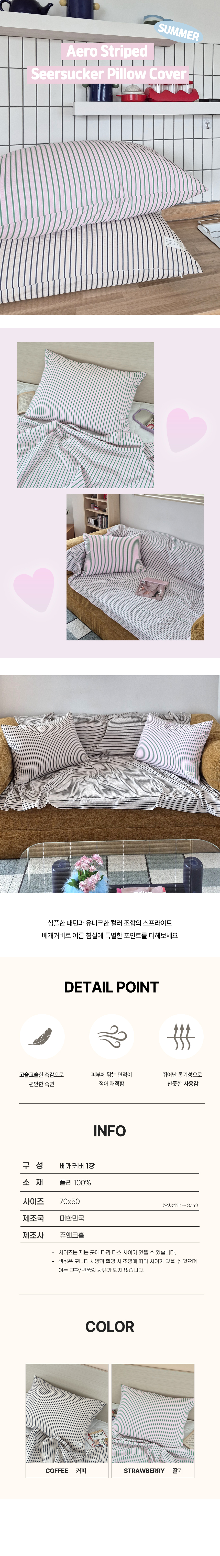 쥬앤크홈 에어로 스트라이프 여름 시어서커 베개커버 베게 베갯잇 리플 냉감 시원한 베개