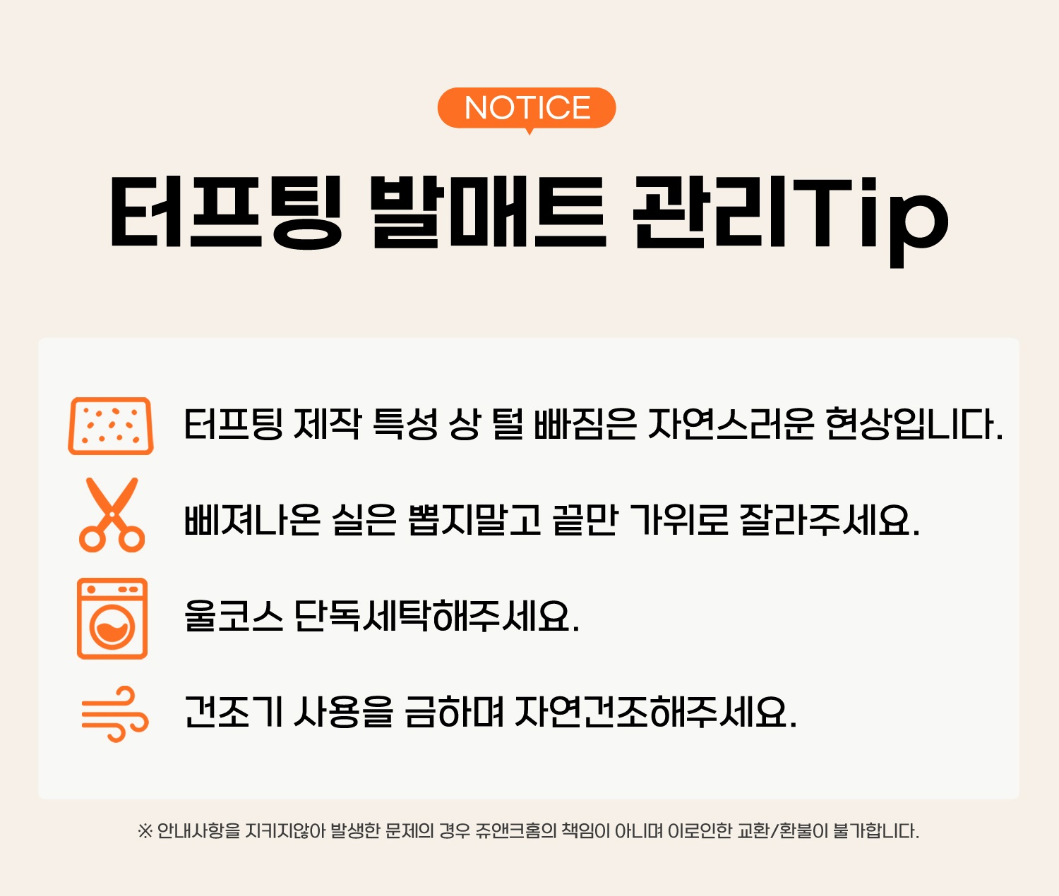 세탁방법 및 취급시 주의사항