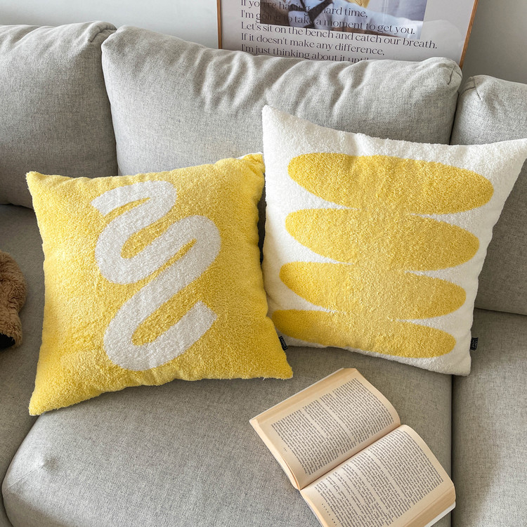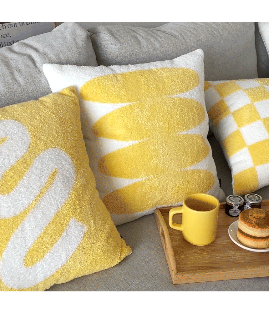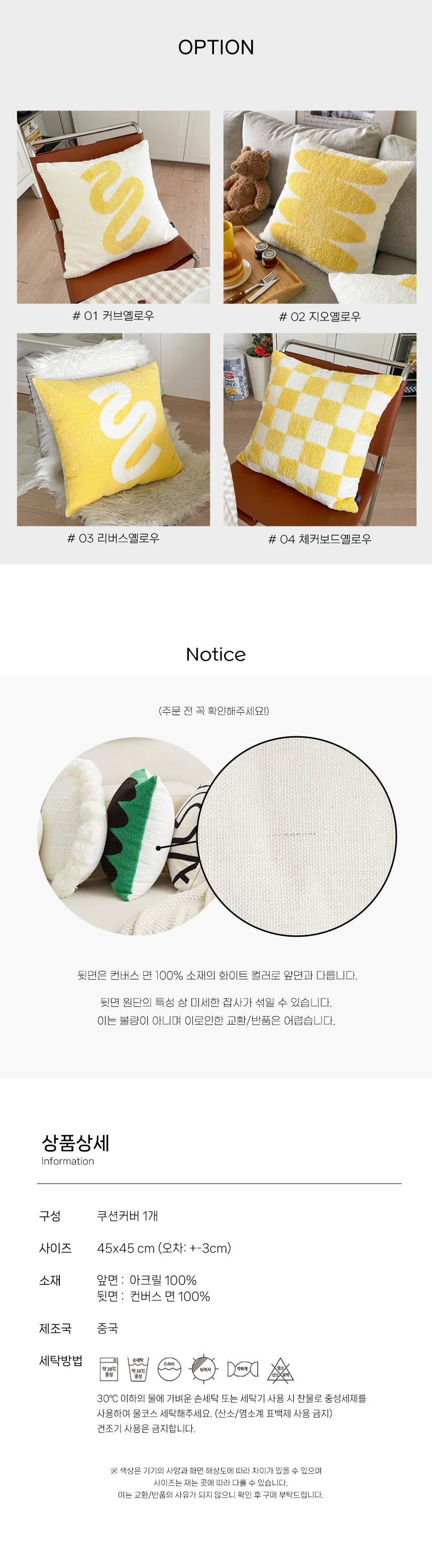 쥬앤크홈 옐로우 머던 자수 쿠션 커버 쇼파 소파 내츄럴 모던 패브릭 45 쿠션