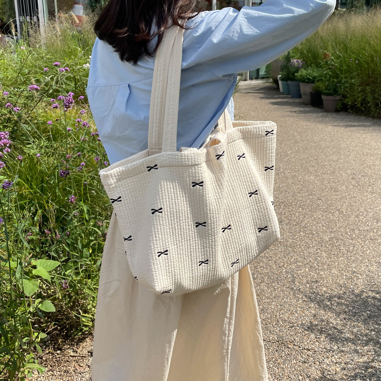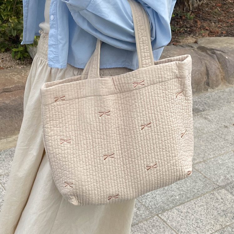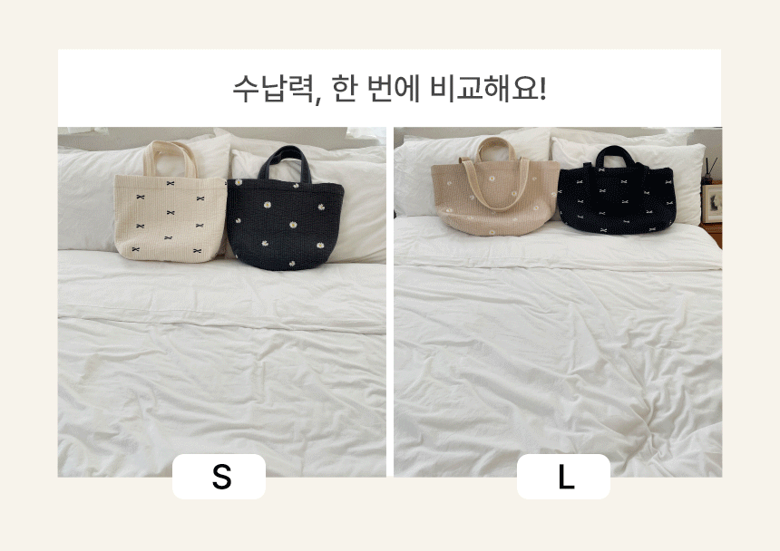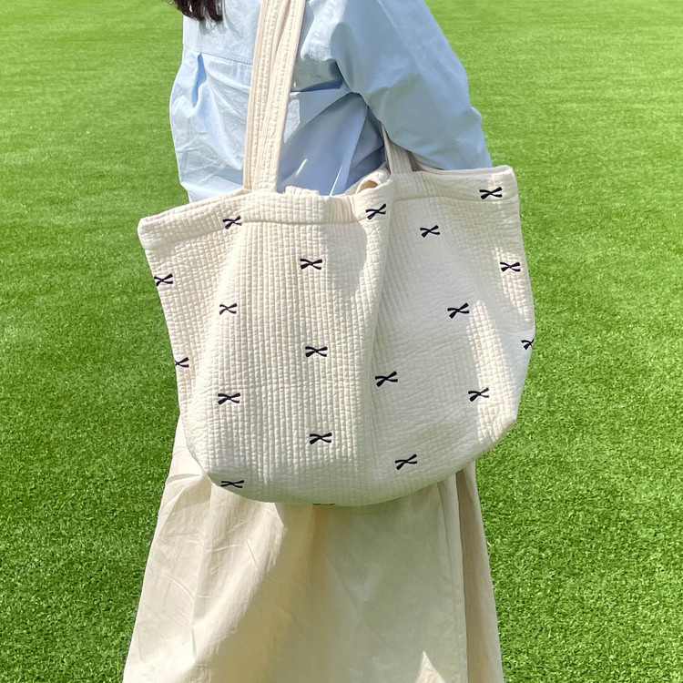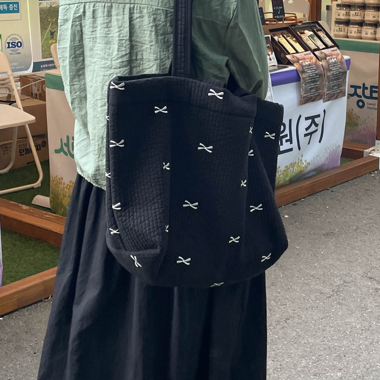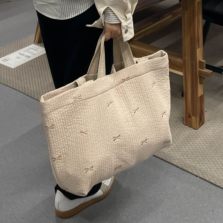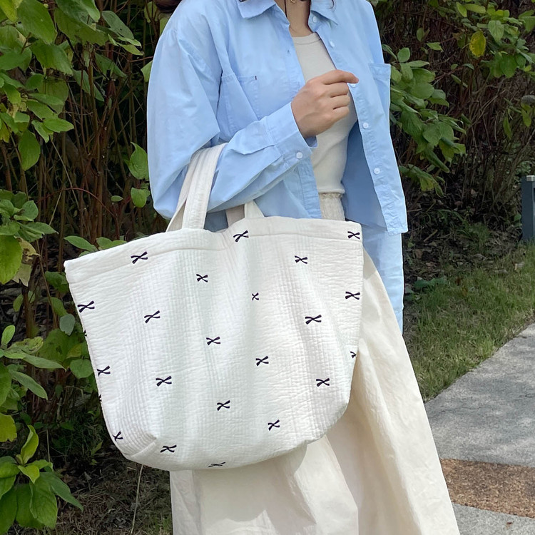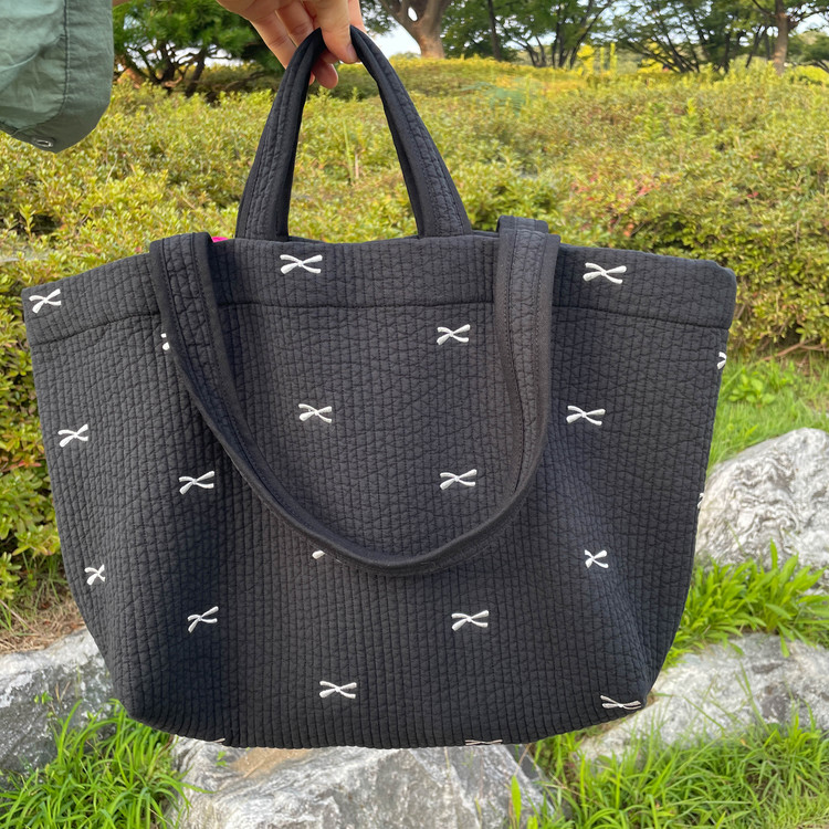 쥬앤크홈 리본 자수 에코백 기저귀가방 토트 숄더 백 노트북 여성 보부상 대학생 가방