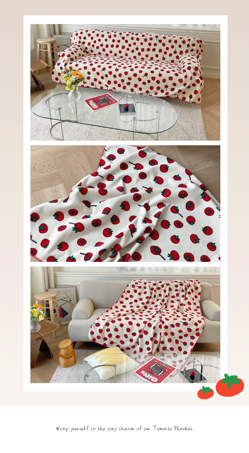 쥬앤크홈 토마토 블랭킷 무릎 담요 캠핑 겨울 이불 쇼파커버